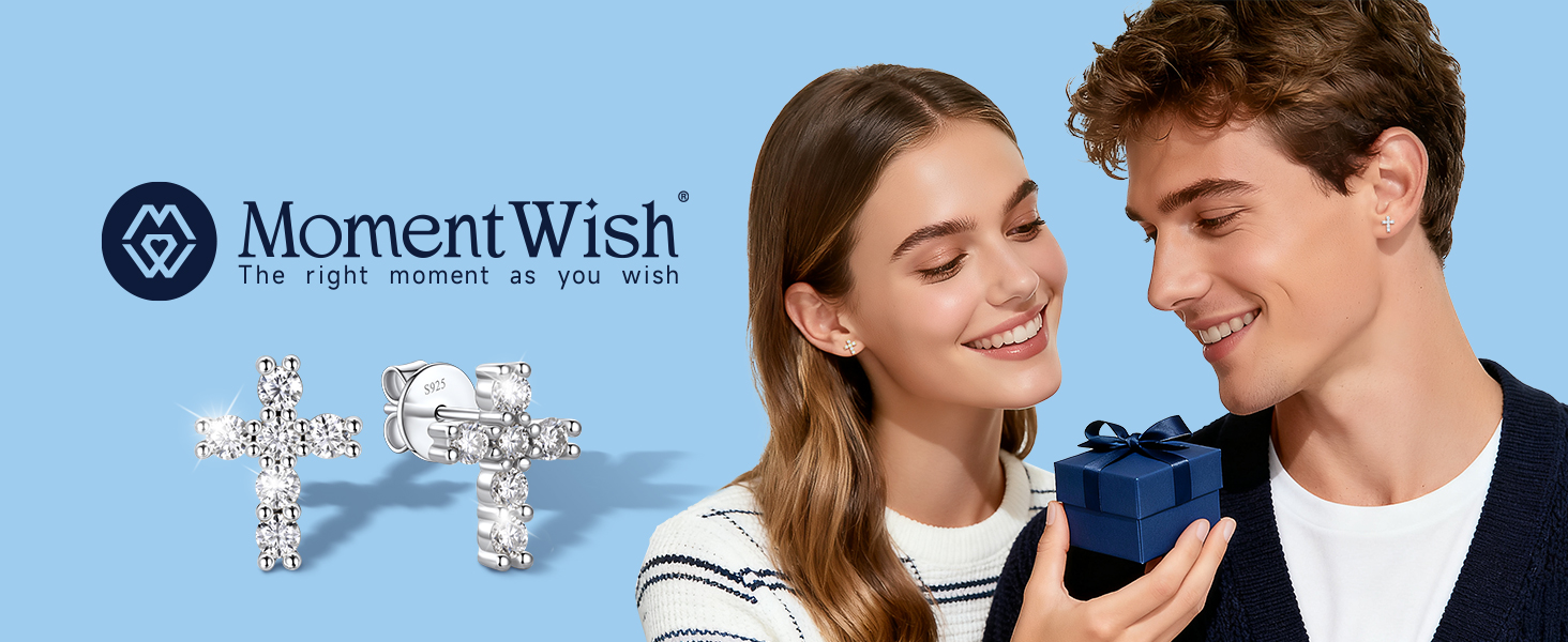 2.5mm Moissanite Dainty Cross Stud Earrings for Women Men in White Gold (D Color VVS1)
